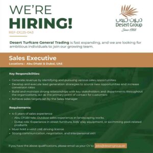 - Abu Dhabi role: Outdoor sales experience in landscaping works.