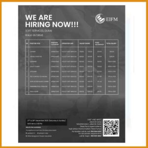 If Dubai Job Portals are on your radar, check Emirates International Facility Management LLC (EIFM). Each latest job listed is well-checked. Plus, they offer decent company benefits. Curious? The walk in interview details are given below.