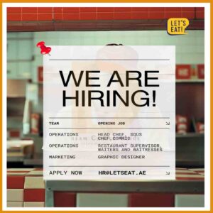 In Dubai and Jobs near me often pops in your mind? Let’s Eat Food Brands comes forward with impressive job benefits and a new job vacancy. Scroll through the positions provided below.