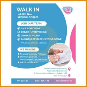 1st-8th Nov Interview Time : 11:30am-3:30pm Interview Location : Near Bin Ghalib Engineering Al Qusais Industrial Area 4 – Dubai – UAE |