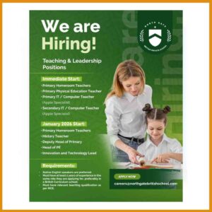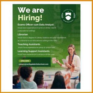 Have a Ajman employment visa on your mind? North Gate British School is the place to be with its superior employee services and a fresh new vacancy. Delve into the available roles listed below.