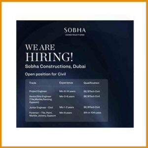 Sobha Constructions Vacancy : Ever thought of the Highest Paying Jobs in Dubai? Those job benefits are sweet. An online job finder will guide you. Remember the Free Job Alert in 2025. A new job vacancy caught your eye? Go for it. The Job Application is your ticket. Sobha Constructions? Worth a look. Need expert advice? Dream Career Guide is the key.